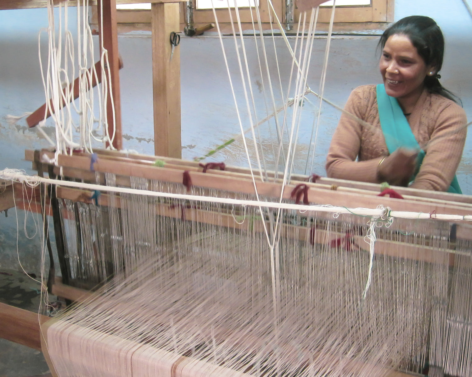 The weaving is done on pit looms or frame looms generally located in weavers’ homes.