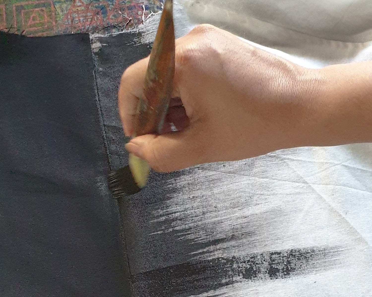 Using a humble paintbrush, the artisans skillfully paint on the fabric, and bring the designs to life.
